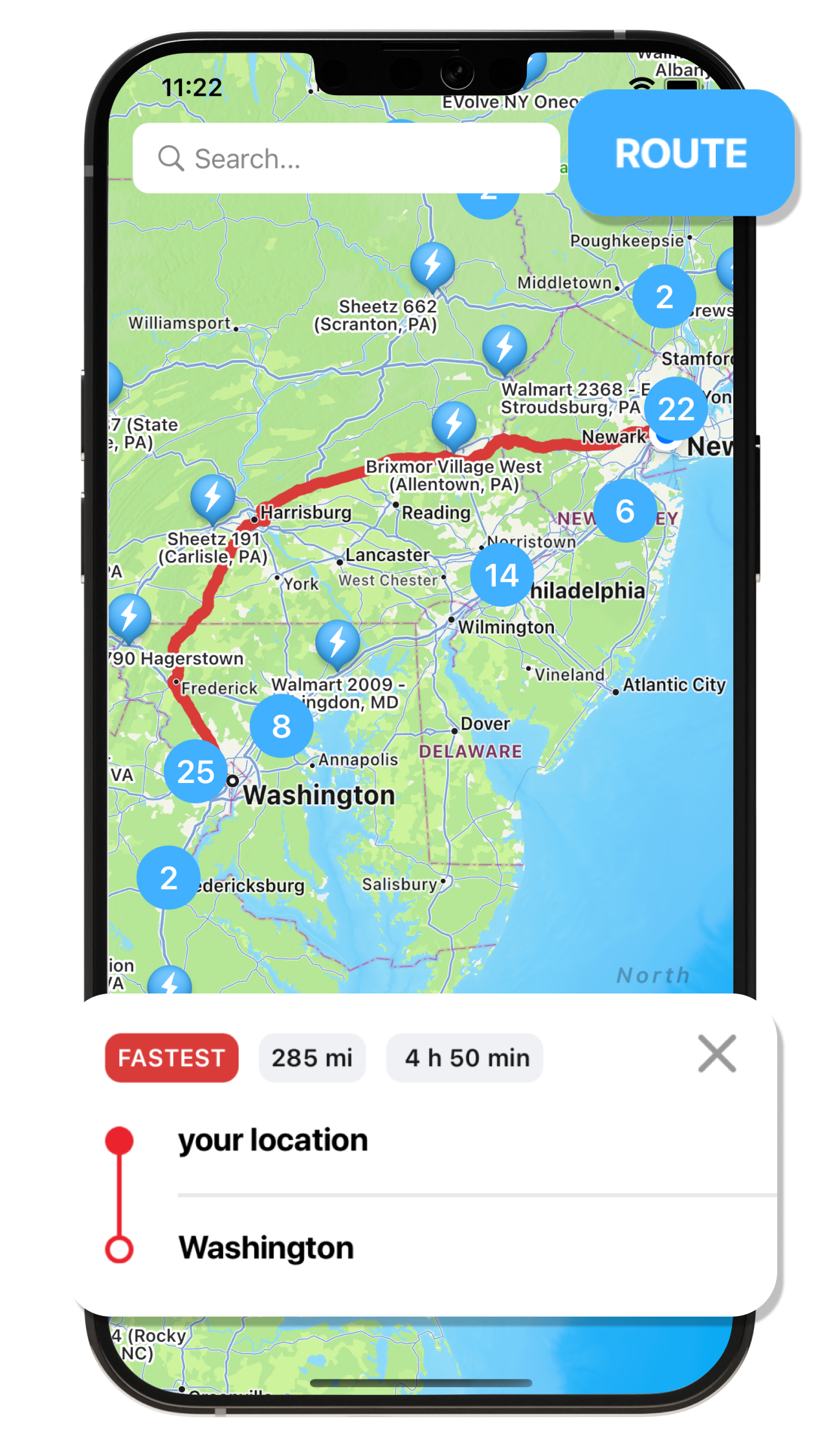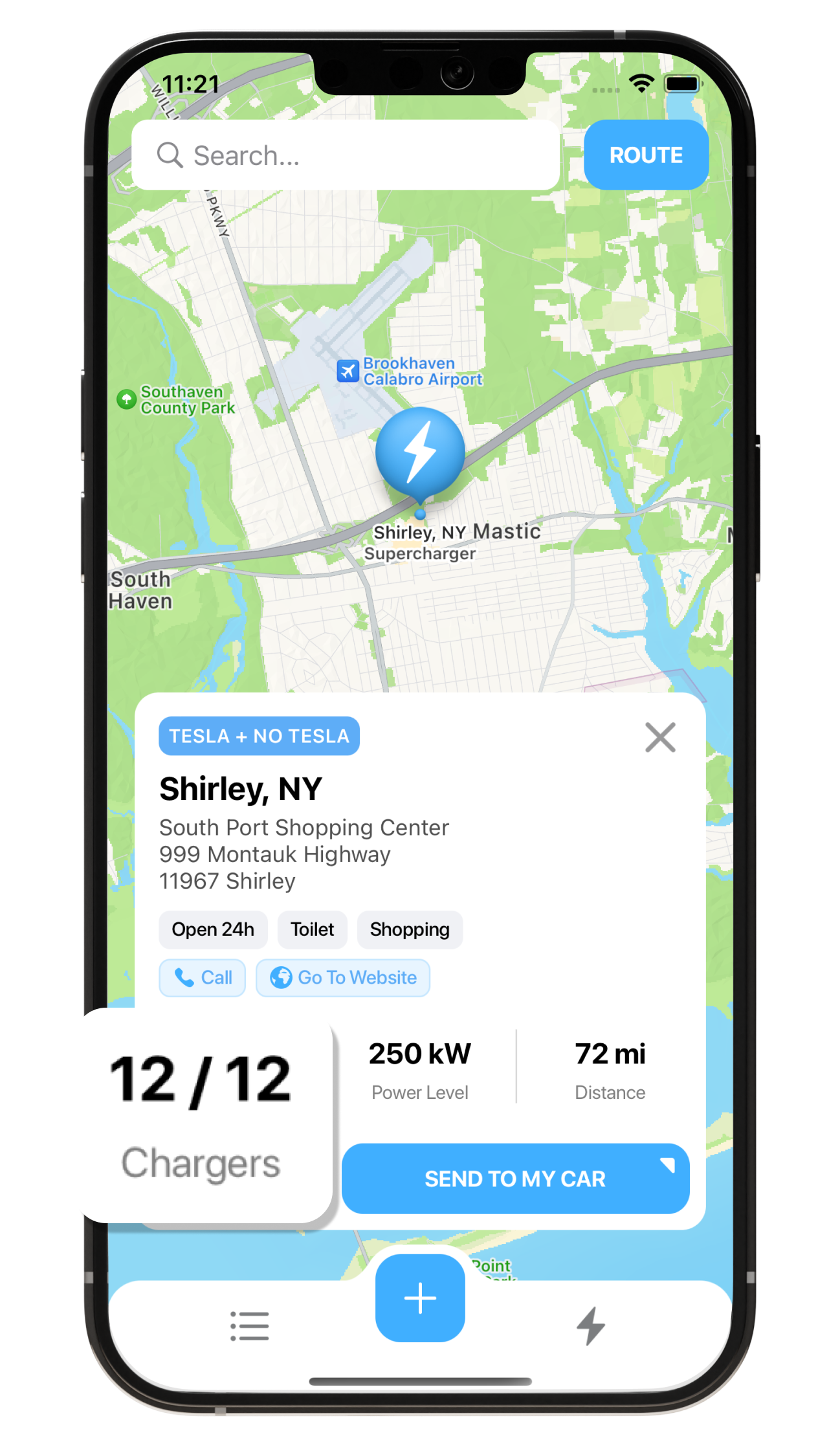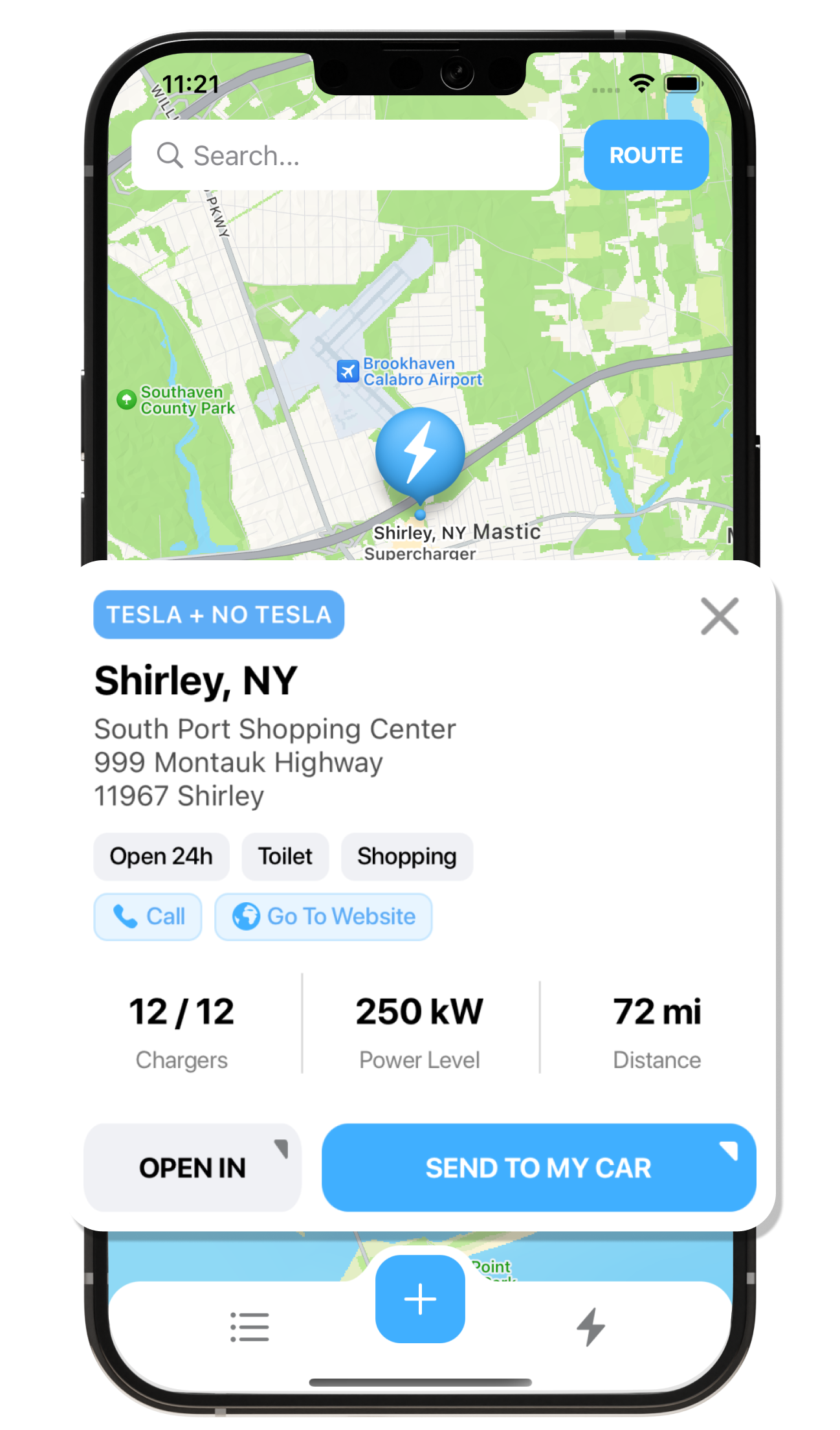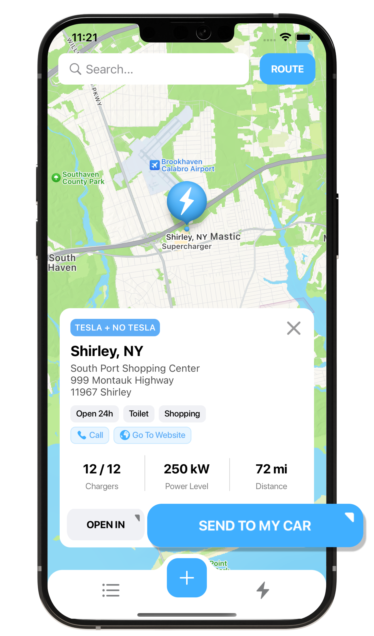 Easily locate nearby superchargers and plan your route.
